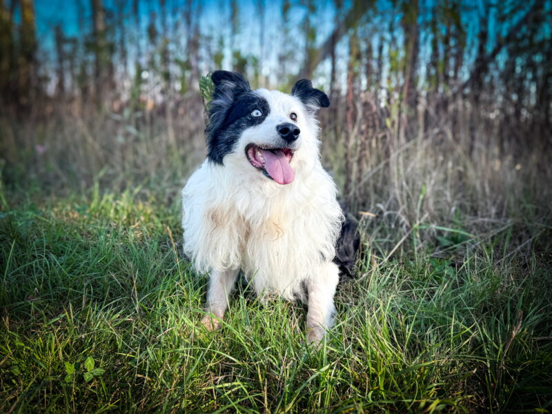 Wygląd: W typie border collie, czarno-biały