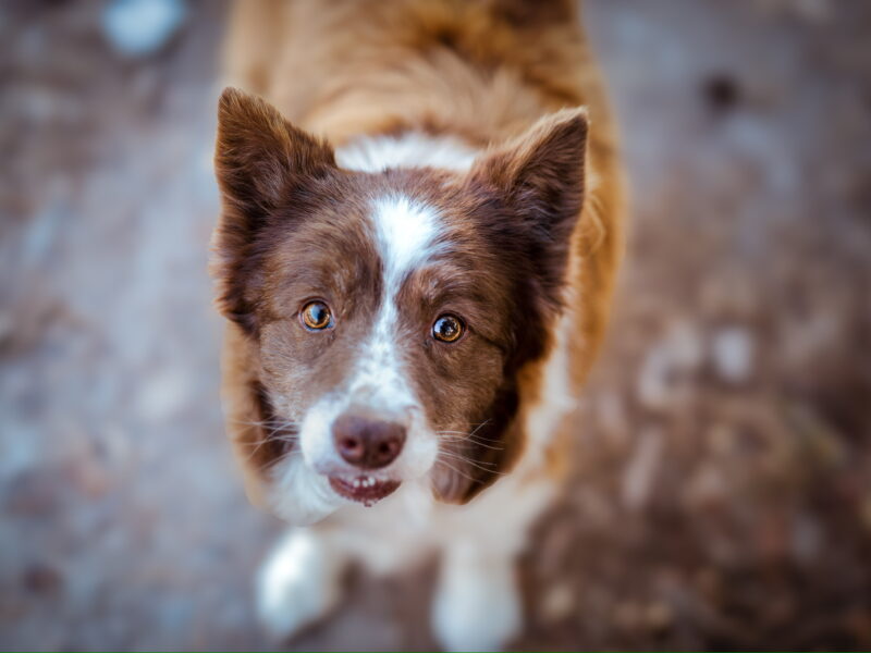 Wygląd: W typie border collie, brązowo biała