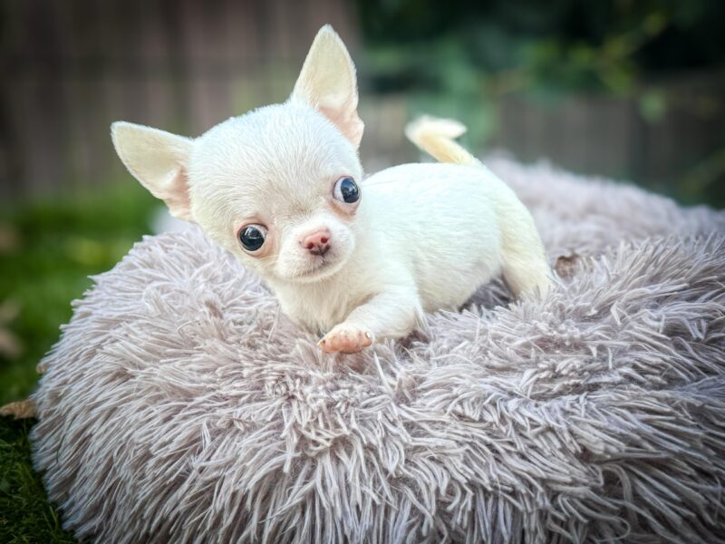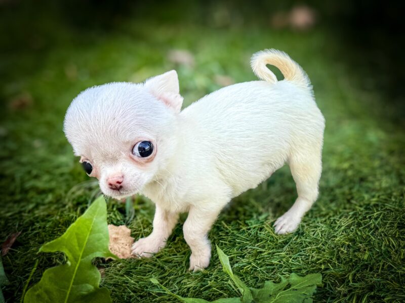 Wygląd: W typie chihuahua, biały